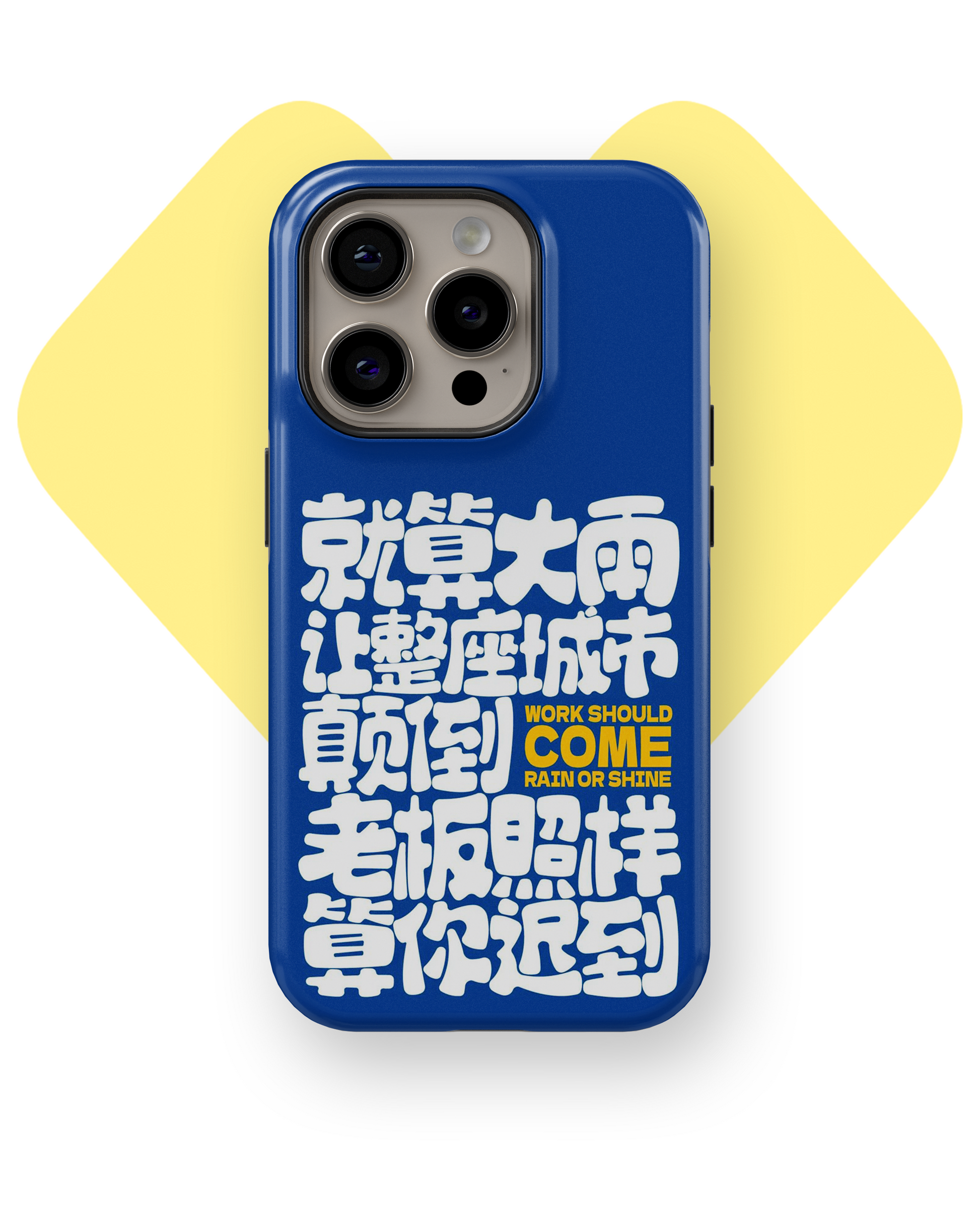 La funda Asian Street ofrece doble protección con una capa interna de TPU que absorbe impactos y una resistente cubierta externa de policarbonato que soporta caídas. Su diseño urbano y atrevido incluye tipografía asiática junto a la frase en inglés "Work should come rain or shine" (El trabajo debe llegar llueva o truene), reflejando determinación y estilo. Protege tu dispositivo con seguridad y una actitud única que destaca en cualquier entorno.