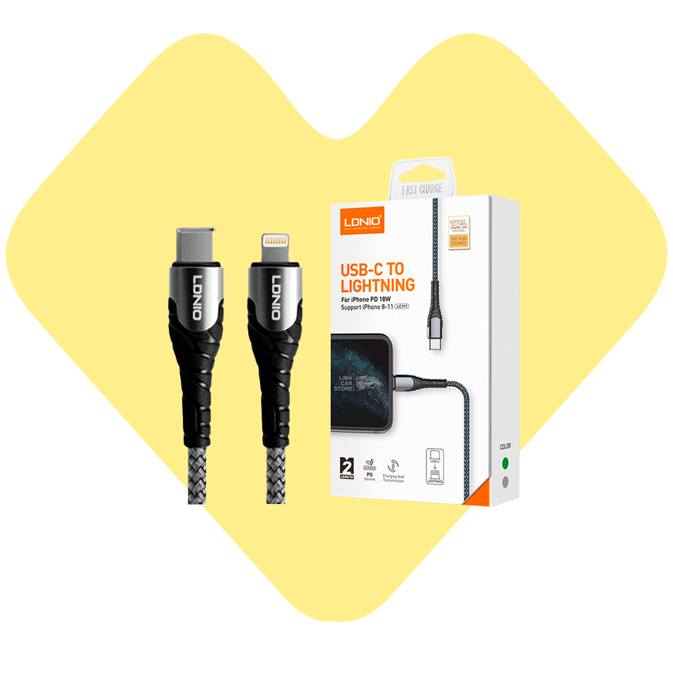 Este cable LDNIO de 2 metro, tipo C a Lightning, ofrece una carga rápida y segura de hasta 30W. Su diseño trenzado y reforzado garantiza una mayor durabilidad, evitando que se quiebre en la conexión. Ideal para quienes buscan un cable resistente y confiable para sus dispositivos Apple.