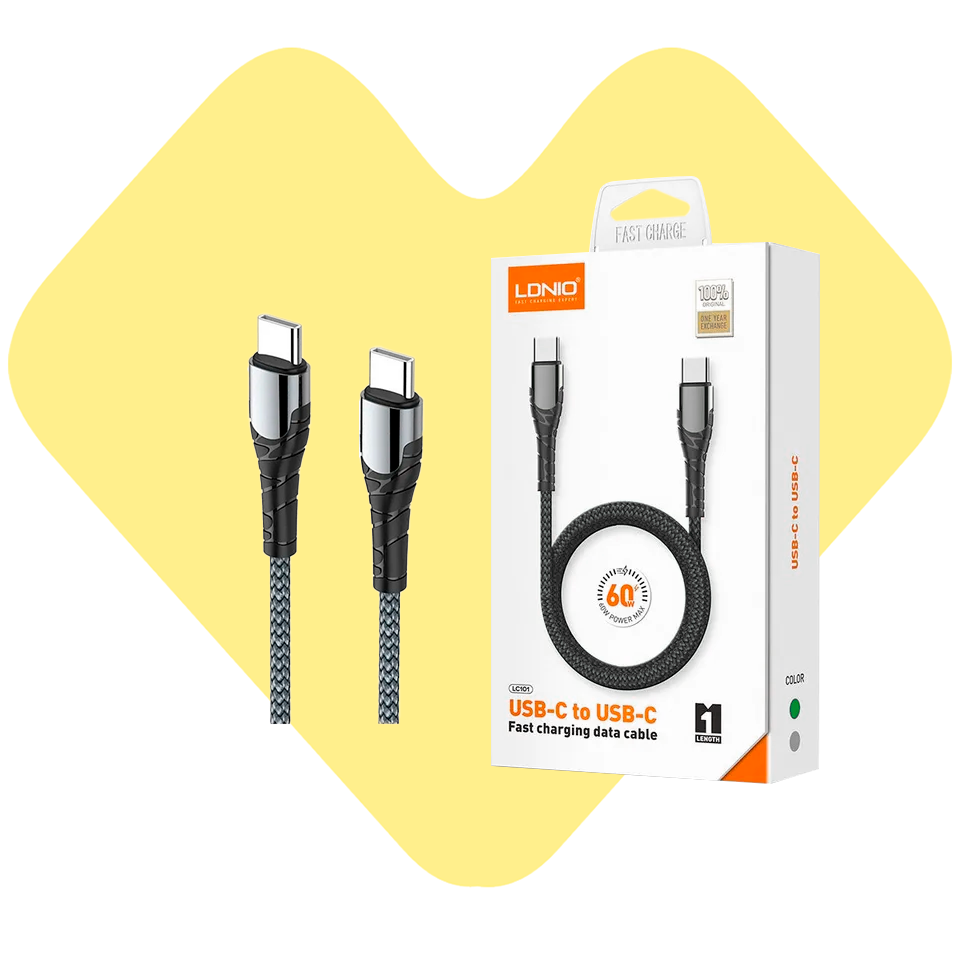 Este cable LDNIO de 1 metro, tipo C a tipo C, ofrece una carga rápida y segura de hasta 30W. Su diseño trenzado y reforzado garantiza una mayor durabilidad, evitando que se quiebre en la conexión. Ideal para quienes buscan un cable resistente y confiable para sus dispositivos Apple.