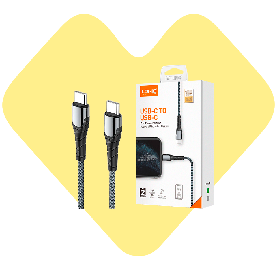 Este cable LDNIO de 2 metros, tipo C a tipo C, ofrece una carga rápida y segura de hasta 30W. Su diseño trenzado y reforzado garantiza una mayor durabilidad, evitando que se quiebre en la conexión. Ideal para quienes buscan un cable resistente y confiable para sus dispositivos Apple.