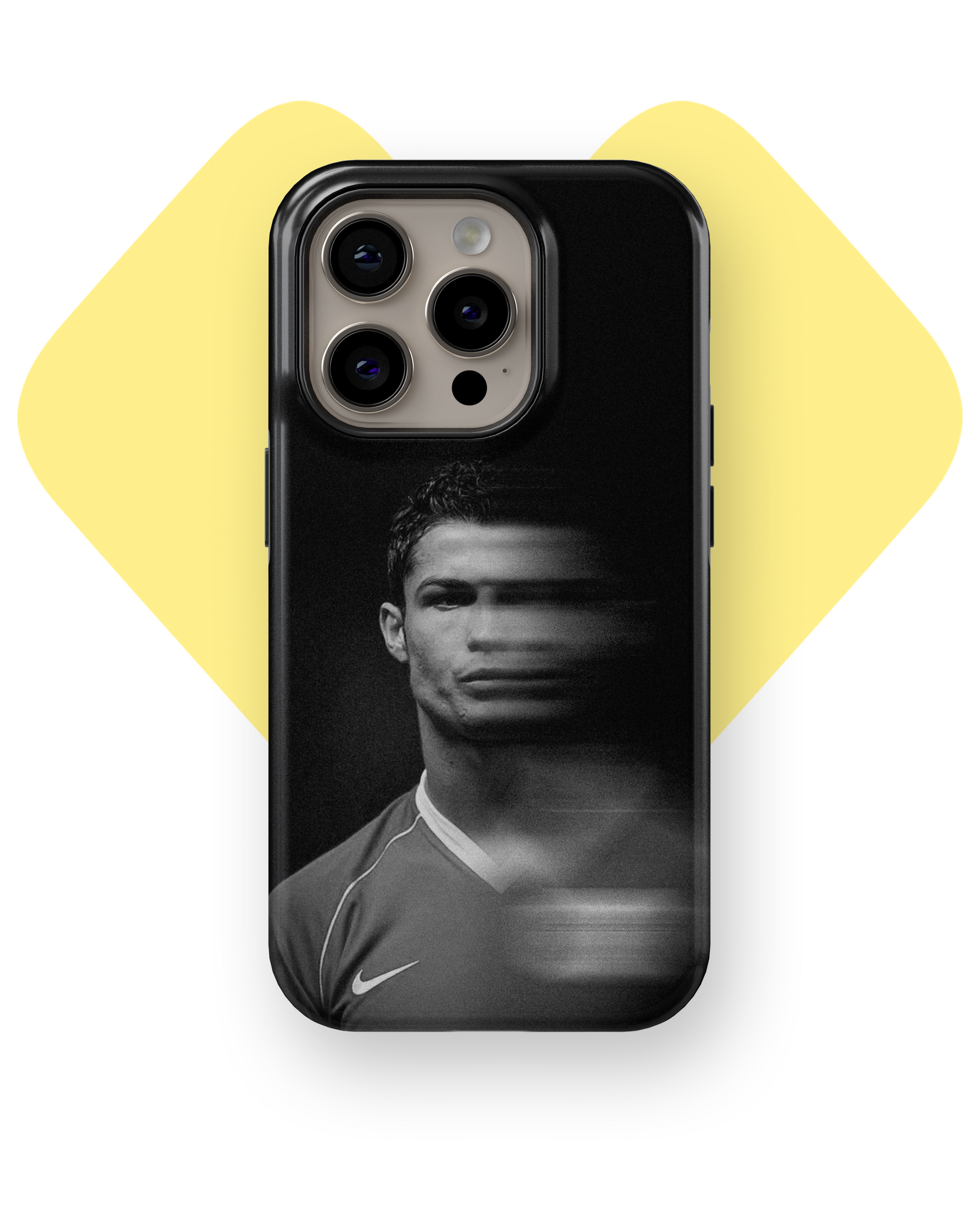 Esta funda de doble protección combina una capa interna de TPU y una externa de policarbonato para absorber impactos y resistir caídas. Su diseño único presenta a Cristiano Ronaldo con un estilo difuminado en la mitad de su rostro, ofreciendo una mezcla perfecta de seguridad y estilo para los fanáticos del ícono del fútbol.