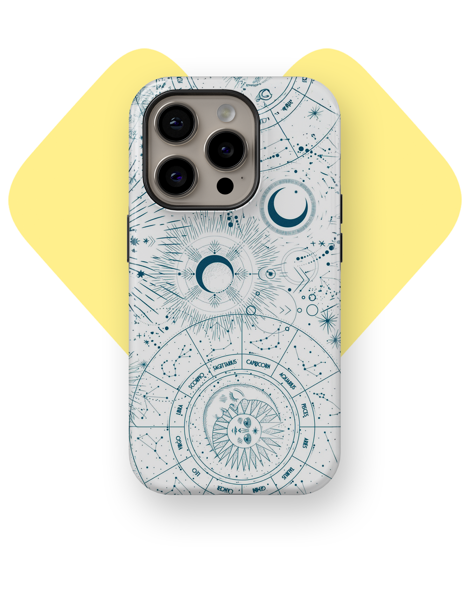 La funda Horóscopo ofrece doble protección con una capa interna de TPU que absorbe impactos y una resistente cubierta externa de policarbonato que soporta caídas. Su diseño detallado incluye todas las constelaciones del horóscopo, la luna y las estrellas en un vibrante color celeste sobre fondo blanco, combinando un estilo astral único con máxima seguridad para tu dispositivo. Ideal para quienes buscan proteger su equipo con personalidad y elegancia cósmica.
