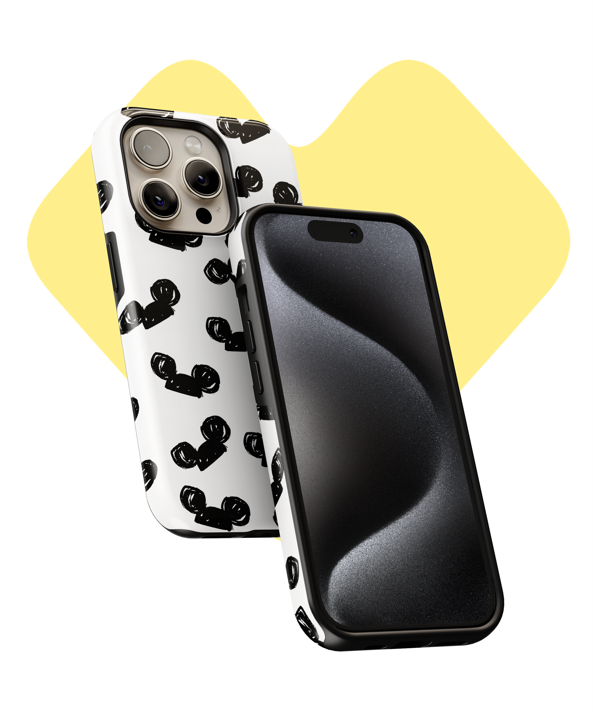 La funda Mickey Mouse ofrece doble protección con una capa interna de TPU que absorbe impactos y una resistente cubierta externa de policarbonato que soporta caídas. Su diseño icónico presenta la silueta de las orejas de Mickey Mouse en color negro sobre un fondo blanco, combinando estilo clásico y diversión mientras protege tu dispositivo con seguridad y personalidad. Ideal para los amantes de lo atemporal y seguro.
