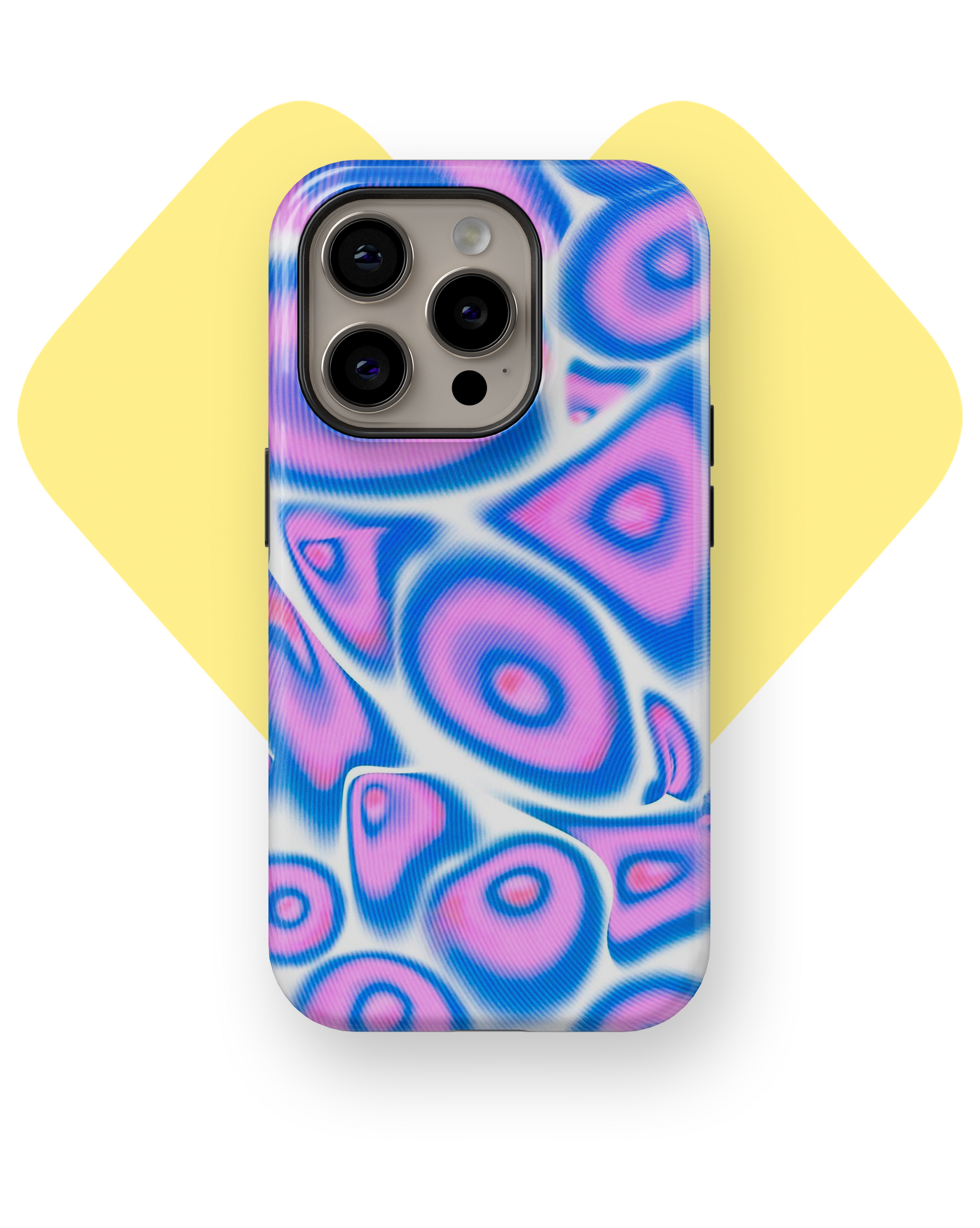 La funda Oculus ofrece doble protección con una capa interna de TPU que absorbe impactos y una resistente cubierta externa de policarbonato que soporta caídas. Su diseño moderno presenta círculos distorsionados en colores fucsia y celeste sobre un fondo blanco, aportando un estilo vibrante y dinámico mientras protege tu dispositivo con máxima seguridad. Perfecta para quienes buscan combinar protección y personalidad en un solo accesorio.